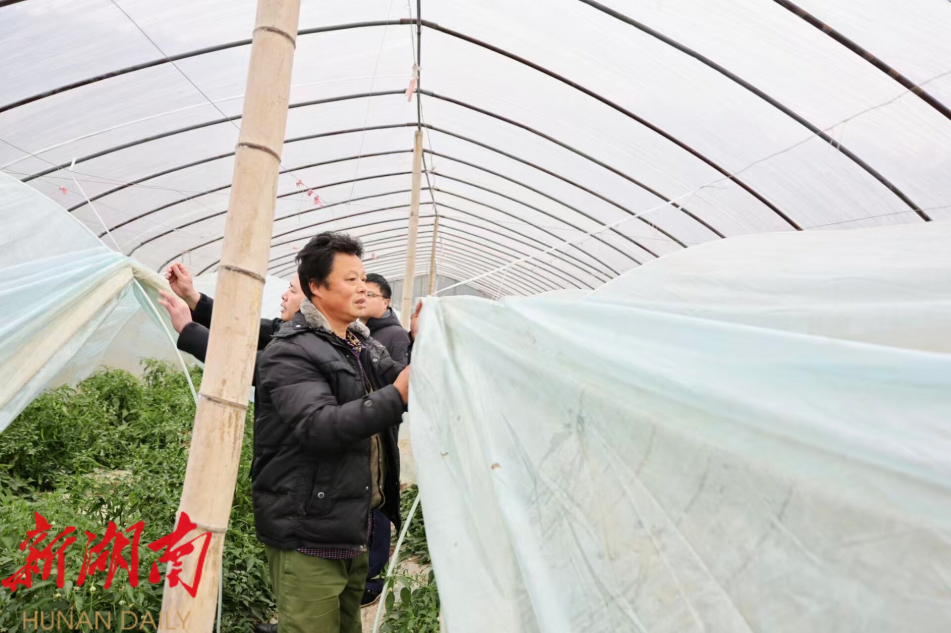 针对本轮寒潮天气,新邵县提前发布预警信息,指导农户做好各项防御准备,最大限度减轻低温对农作物资等的不利影响。同时,该县农业农村局提前谋划、周密部署,联合各乡镇组织多路农技专家深入田间地头,帮助农户抢收可上市蔬菜,指导种植户及时清沟理渠,为露天果树包裹防寒材料,落实棚外防寒、棚内保温等措施,全力减少低温天气对农业生产的影响。