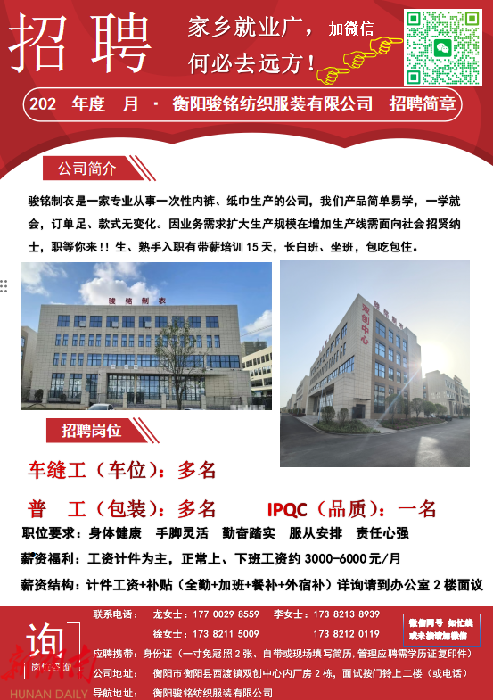 记者带你找工作——衡阳骏铭纺织服装有限公司