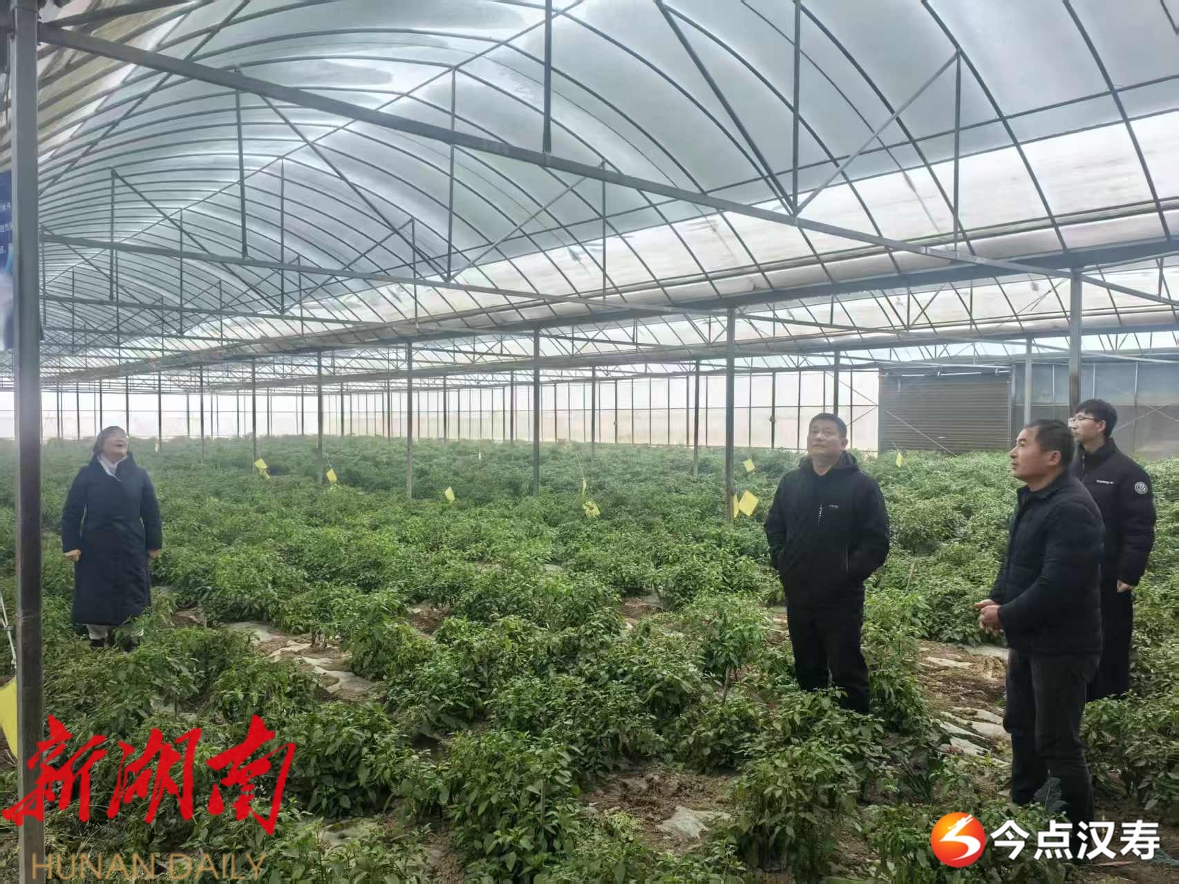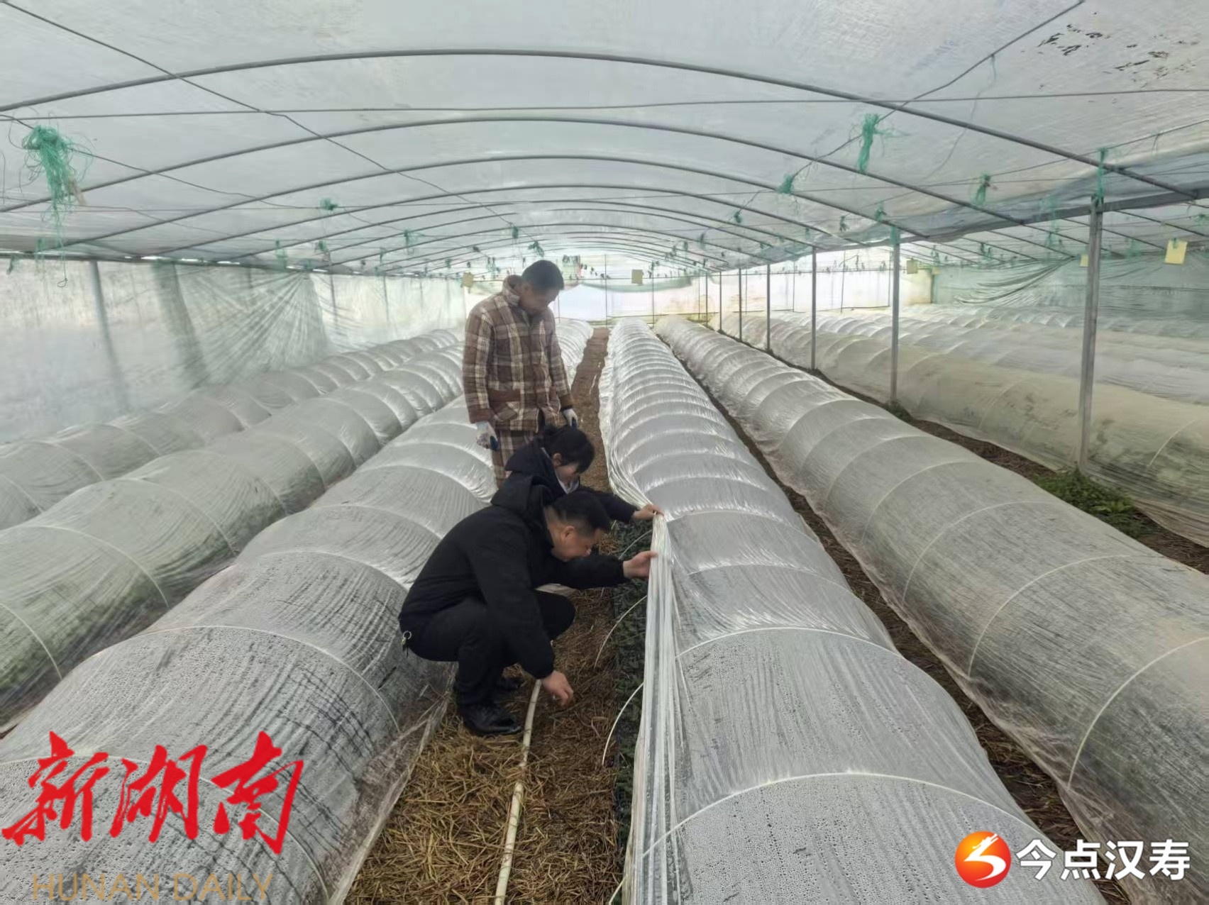汉寿县农业农村局成立农业安全生产技术指导专班。专班成员顶风冒雪,深入各乡镇(街道)农业生产一线,重点对育秧大棚、蔬菜种植大棚等关键场所,实时进行防灾技术指导。