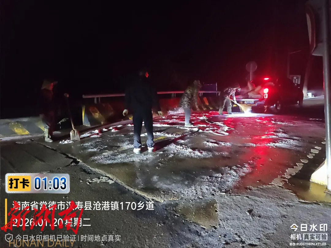 1月20日凌晨,沧港镇迅速启动应急响应机制,重点对辖区内易结冰桥梁、主干道交叉口、学校周边路段等关键位置开展预防性撒盐除冰和实时巡查处置。通过持续作业,有效防止了道路结冰,显著降低了冰雪天气对交通出行的影响。