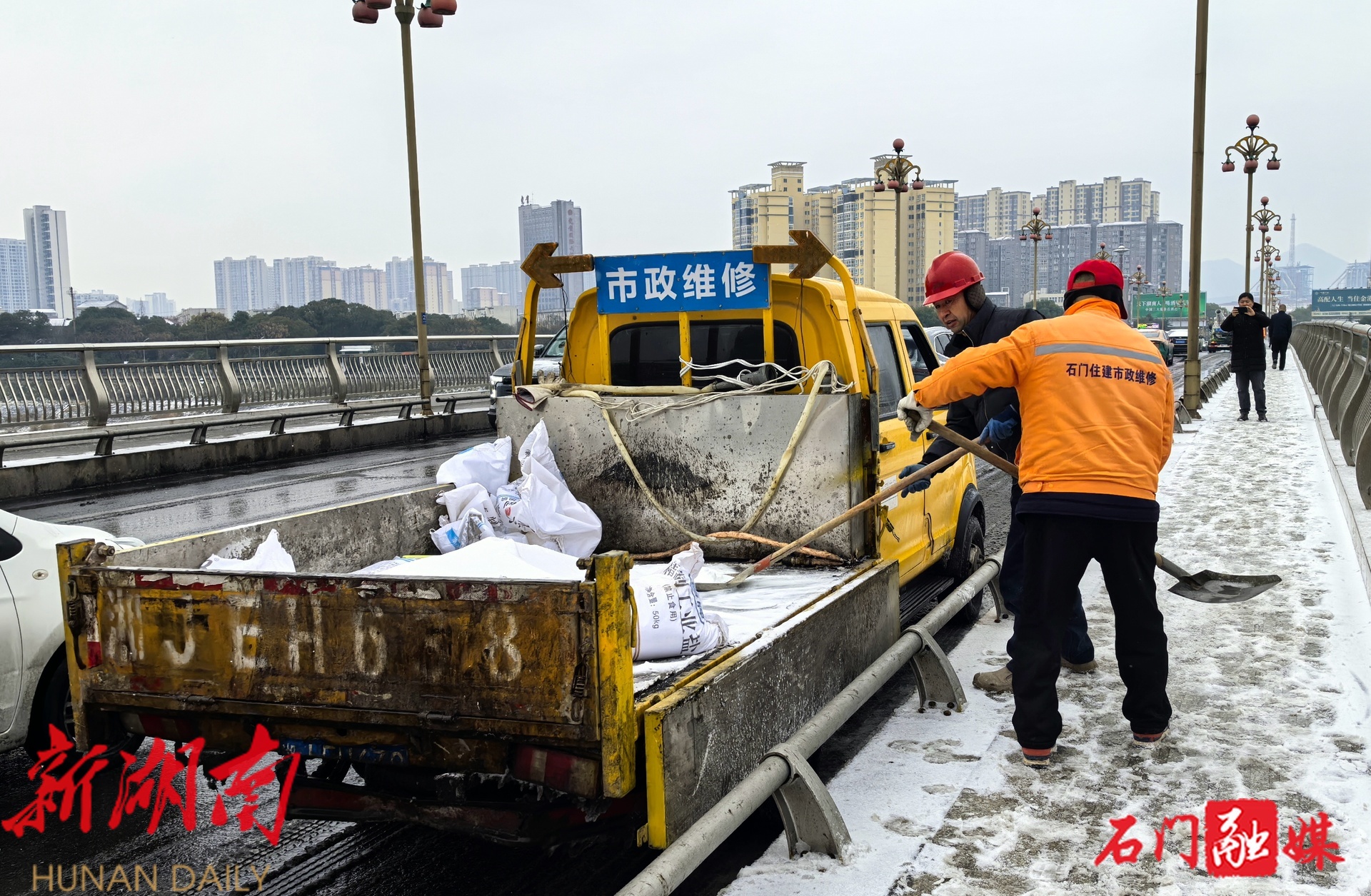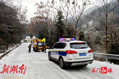 新石门客户端1月20日讯(记者 刘越)受强冷空气影响,石门县自1月19日起出现冻雨、雨夹雪转纯雪天气。截至20日07时,全县普降小到中雪,局地大雪,最大积雪深度3厘米,境内路段及桥梁出现道路结冰,部分高海拔地区最低气温低至-9℃。未来三天,我县仍将维持低温雨雪天气,最低气温低至-4℃。