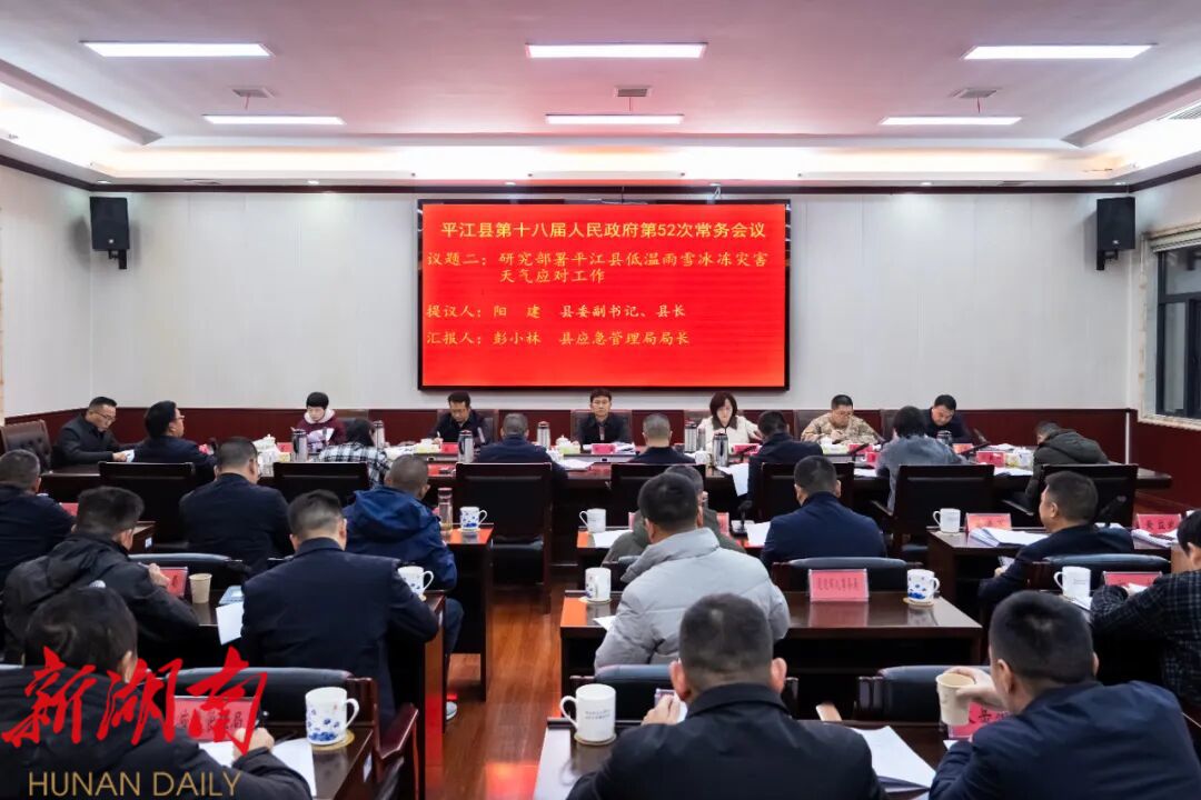 平江融媒1月19日讯(记者 雷怡慧)1月19日,县委副书记、县长阳建主持召开平江县第十八届人民政府第52次常务会议,传达学习党中央和国家重要会议精神,审议相关议题,研究部署当前重点工作。