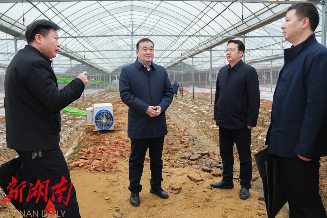 在梅仙镇小源村湖南鹏才农业发展有限公司育秧基地,刘正仁详细了解大棚加固措施、防寒设施配备及资源综合利用情况,叮嘱农业部门要组织技术人员深入田间地头开展抗寒防冻田间管理等技术培训,努力把雨雪冰冻天气对农业造成的损失降到最低。