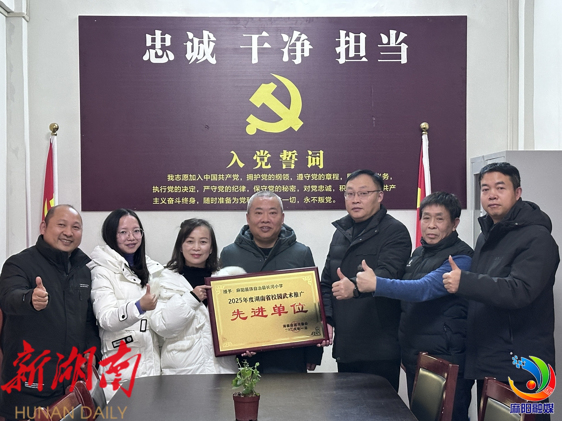 麻阳融媒1月20日讯(记者 欧阳) 1月20日,麻阳长河小学传来喜讯,该校荣获2025年度湖南省校园武术推广先进单位称号,副县长滕召和为该校授牌,与长河小学师生共同分享这份属于麻阳校园体育的省级荣誉。