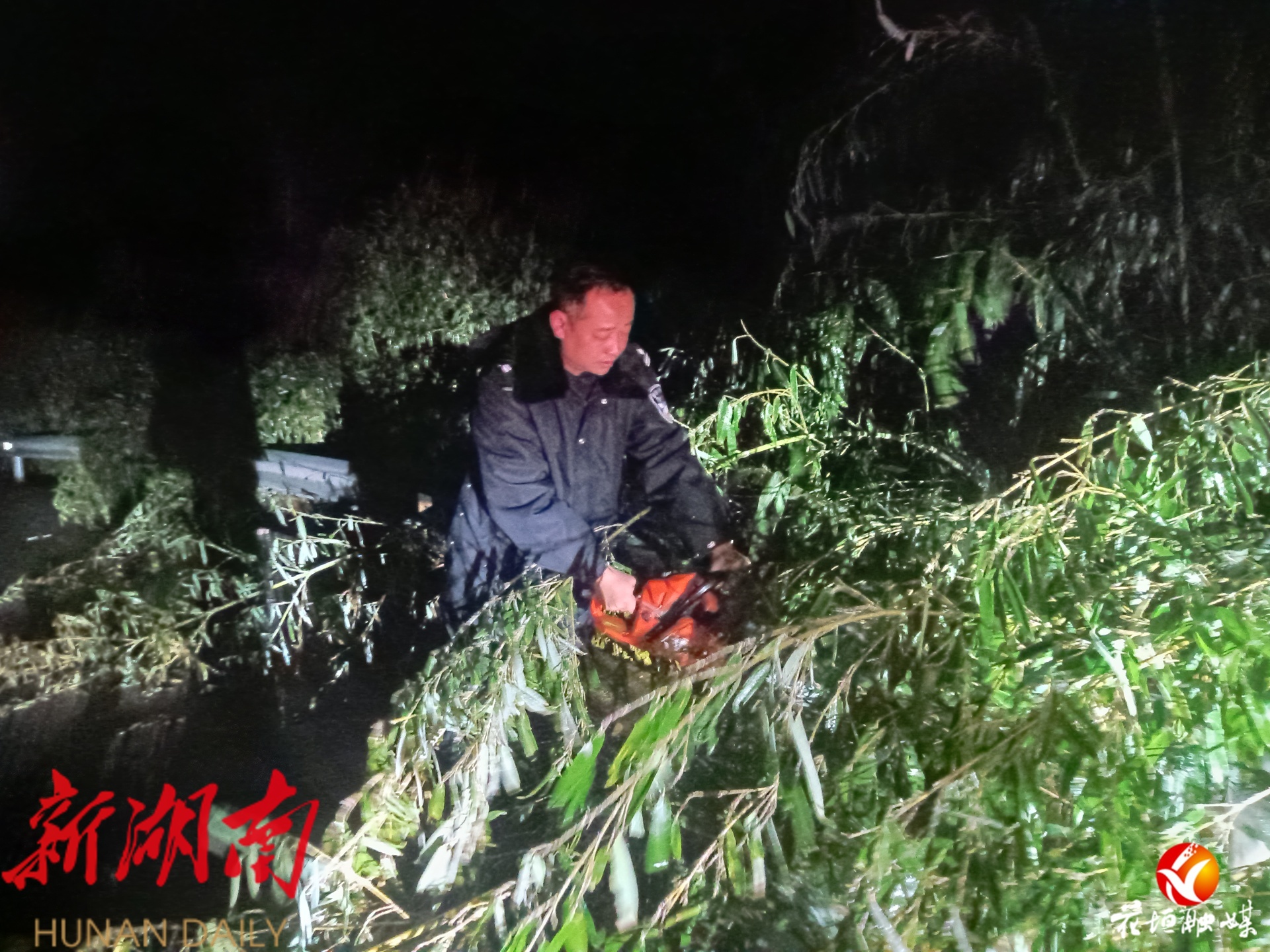 各派出所对国省道、乡村公路等重点路段展开24小时不间断巡逻。19日晚21时许,雅酉派出所民警在巡逻中发现路边树木因积雪倒伏,影响通行,随即设置警示标志,清理树枝,引导车辆安全通过。