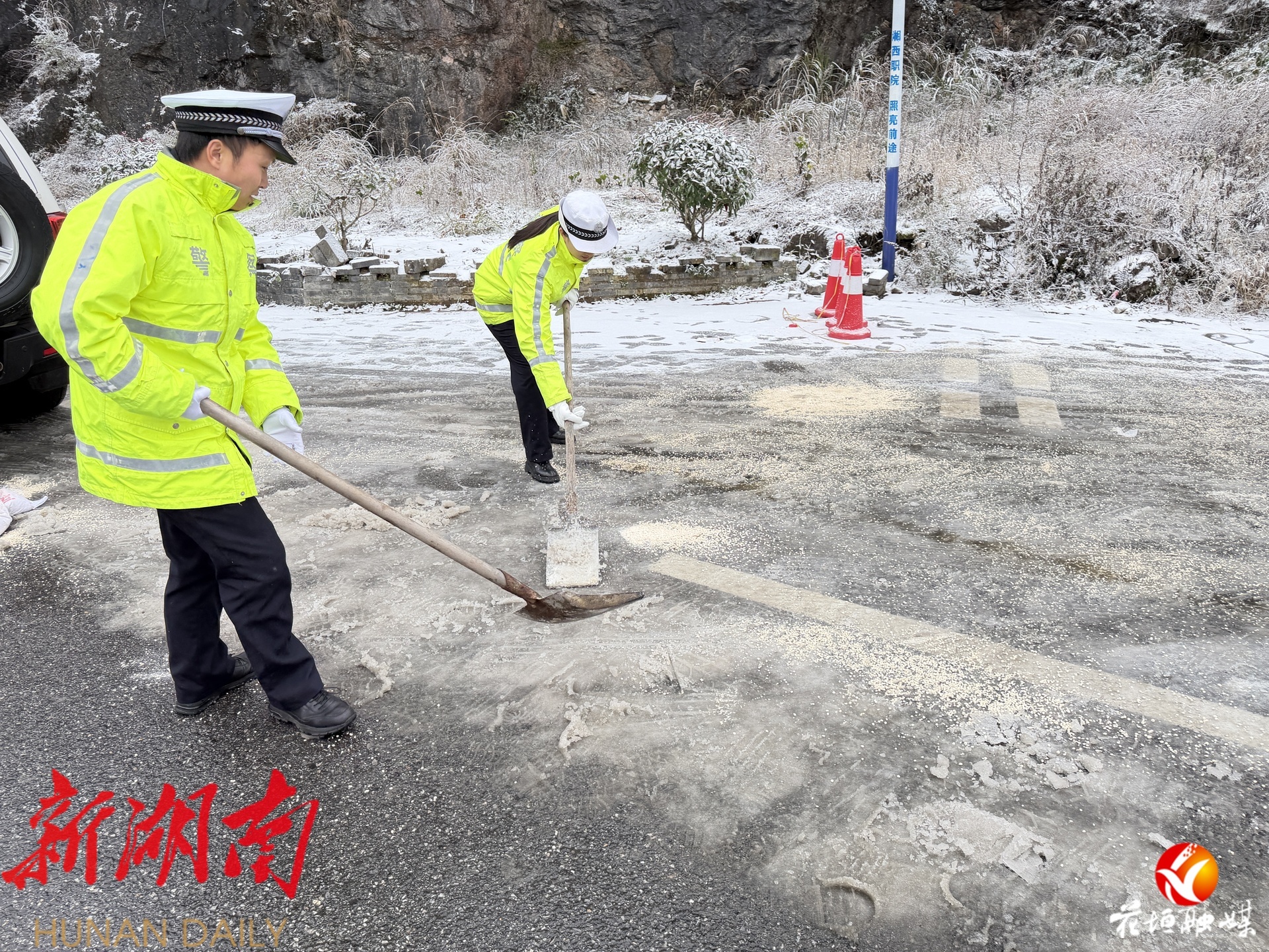 湖南日报·新湖南客户端1月20日讯(通讯员 麻秋慧)1月19日,花垣县气温骤降,迎来低温冰冻雨雪天气,部分道路积雪结冰,给交通出行带来影响。花垣县公安局迅速启动应急响应,全警投入、全力应对,确保辖区道路交通安全有序。