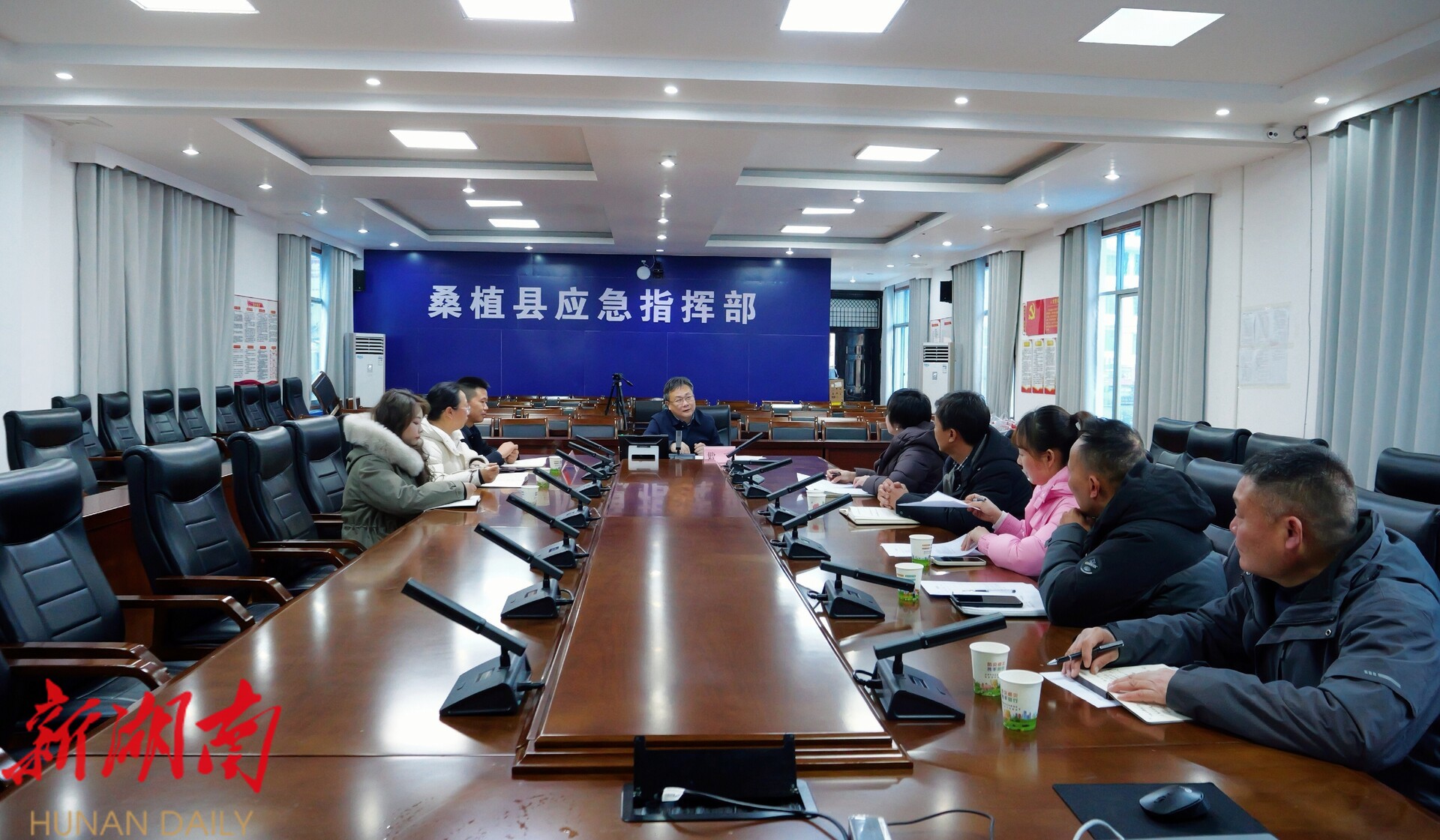 曹飞 听取了桑植县应对19日 — 22日寒潮低温雨雪冰冻天气工作情况汇报,详细了解当前天气实况、受灾情况和各部门工作开展情况。