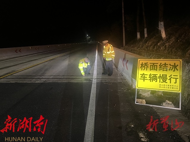 为有效应对低温雨雪冰冻天气带来的交通安全隐患,大队提前启动应急预案,全员进入战备状态。在国道G537南风坳等易结冰路段实行24小时巡逻管控与定点值守,通过亮警灯、立警示牌等方式,提醒过往车辆做好安全防范。主动加强与气象、应急等部门之间的联勤联动,密切关注天气变化,及时发布天气、路况及预警信息,提示驾驶人合理安排出行。积极与广东省连州市交警取得联系,做到信息互通,确保路面一旦出现结冰情况,第一时间两地联合进行交通管制,协助交通、公路等部门开展除冰工作,全力保障辖区道路交通安全和人民群众生命财产安全。