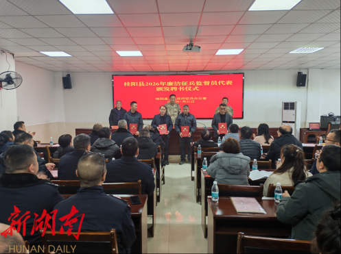 新桂阳1月20日讯(通讯员 夏峰)1月20日,桂阳县2026年上半年征兵体检、政考业务培训会在县人武部举行。会上,县征兵办为来自人大代表、政协委员、退役军人、应征青年家长等群体的新聘任廉洁征兵监督员代表颁发聘书,还邀请县卫健局、县公安局等的相关业务骨干结合典型案例,对体检流程、标准把握、政考重点环节及常见问题进行了详细解读。