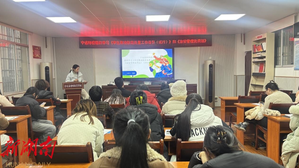 湖南日报·新湖南客户端1月21日讯(通讯员 邓艳林 李慧萍 黄湘兰) 近日,宁远县特殊教育学校开展了学生欺凌防范处置工作及治安管理处罚法专题培训,强化校园安全管理,提升教职工预防和应对校园欺凌的能力,保障学生身心健康。