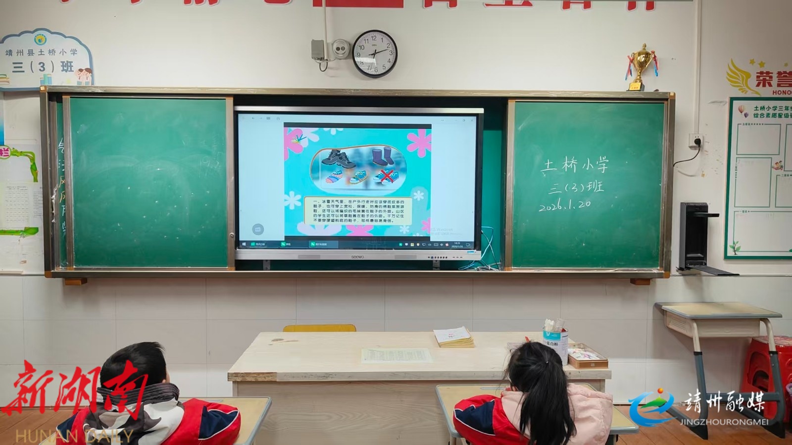 靖州融媒1月21日讯 (通讯员 彭茂胜 胡彩相)1月20日,靖州苗族侗族自治县土桥小学各班级开展冬季防护主题班会。教师详细讲解路面防滑、防寒保暖知识,通过情景问答提醒学生避险求助,增强学生安全意识、筑牢校园安全防线。