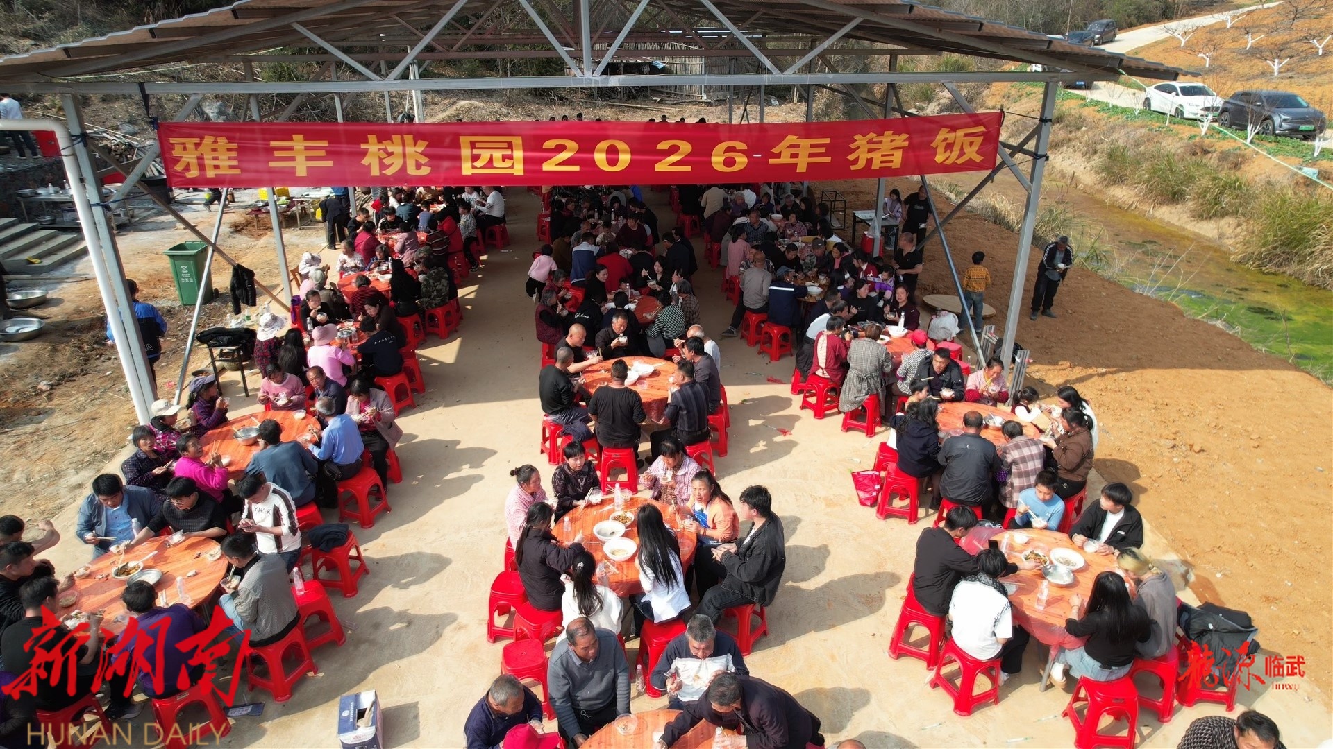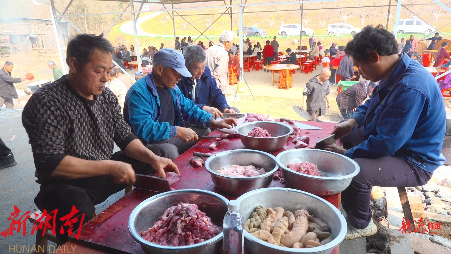 龙源临武客户端1月21日讯(记者 戴梦瑶 唐麒斌)年关临近,全网“刨猪宴”热潮持续升温,重庆“呆呆”求助按猪、千人赴宴的暖心场景刷屏社交平台,唤醒了国人对乡土年味的集体记忆。紧随这股热潮,临武县南强镇以一场热闹非凡的百人年猪饭拉开年味序幕,借烟火气激活乡村活力,重拾久违的团圆暖意。