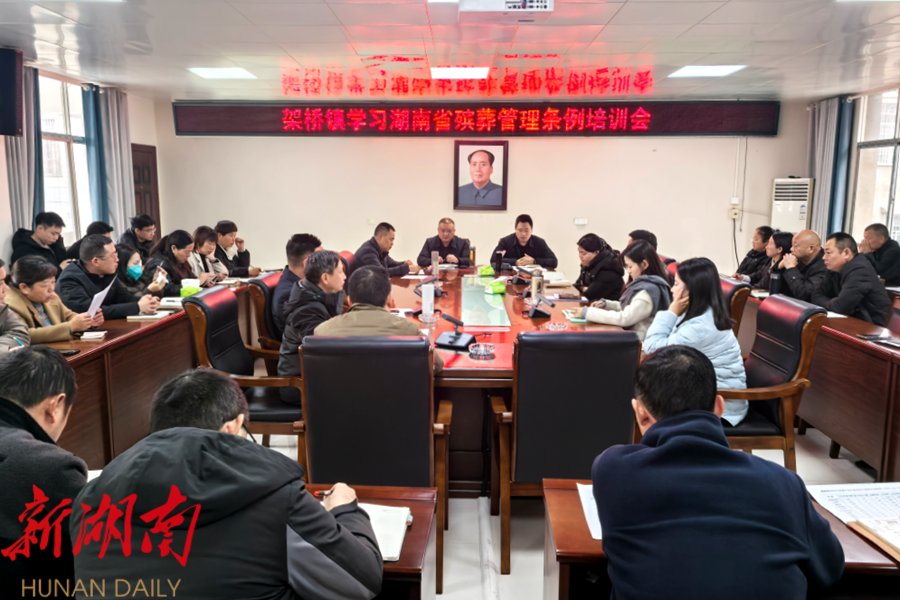 视外桃源客户端1月15日讯(通讯员:周威)为推进殡葬改革落到田间地头,规范村里的治丧行为,让镇村干部懂法、会用法,近日,架桥镇党委政府精心组织开展《湖南省殡葬管理条例》专题培训。镇机关干部、各村(社区)支书、民政专干等70多人坐在一起学法规、聊办法。
