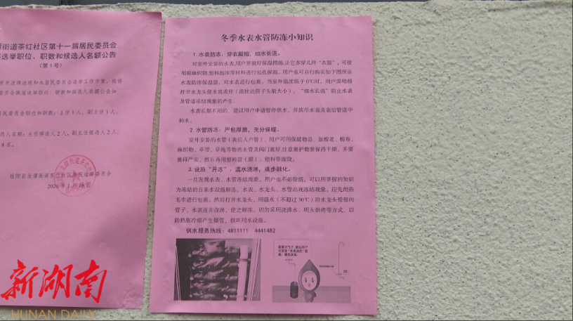 新桂阳1月21日讯(记者 刘克坚)最近,我县遭遇持续低温冰冻天气,最低气温降至零下2℃,给供水设施安全运行带来严峻考验。为保障市民冬季用水无忧,县自来水公司迅速启动低温应急保障机制,组织抄表员化身“防冻宣传员”,在完成查表工作的同时,深入社区一线普及用水防护知识。