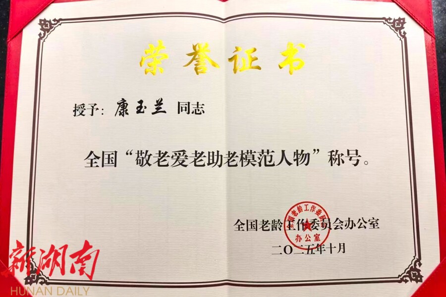 视外桃源客户端1月15日讯(通讯员:王碧秀)“康玉兰同志,恭喜您获评全国‘敬老爱老助老模范人物’称号,我们特地登门为您颁奖,您十七年如一日照料老人的事迹,全镇人民都该向您学习!”近日,西安镇社会事务综合服务中心与民政社工站的工作人员带着荣誉证书和慰问物资,走进康玉兰家中,将这份饱含敬意的表彰送到她手中。