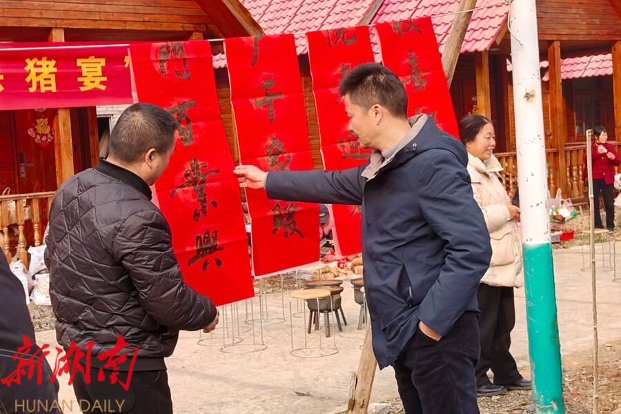 笔墨留香未散,“藏香猪杀猪宴”的烟火气已然升腾。作为本次新春文化惠民活动的配套环节,这场乡土盛宴让雅致墨香与人间烟火完美交融。热气腾腾的农家土菜接连上桌,藏香猪肉的鲜香、非遗擂茶的醇厚、蒿子粑粑的清香交织弥漫,村民们围坐圆桌,就着地道美味唠家常、话发展,畅谈村里的日新月异。