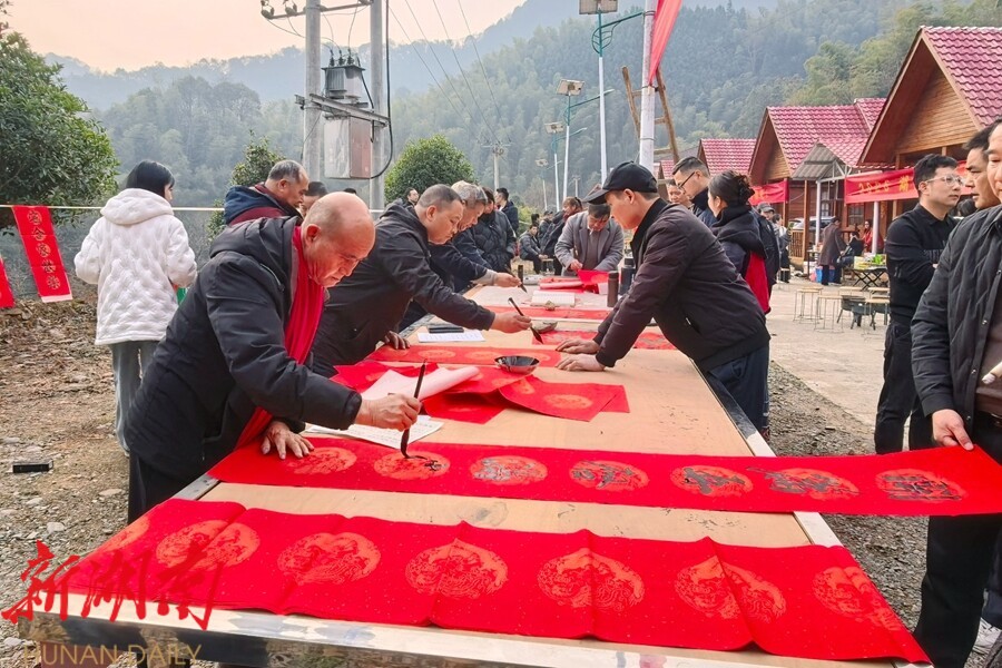 视外桃源客户端1月19日讯(通讯员:康阿崚)为丰富村民新春文化生活,营造欢乐祥和的节日氛围,近日,西安镇书法协会牵头在桥塘村四仙棋农庄开展新春写联活动,为村民送上别具一格的文化年味。