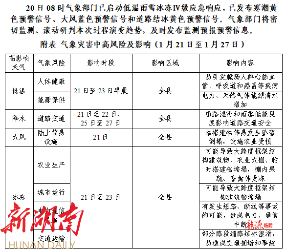 1.重点防范21日至22日雨雪冰冻及持续低温造成的道路结冰、低能见度对交通出行、城市运行的不利影响,注意防范冻雨对电力、通讯线路等设施的影响。