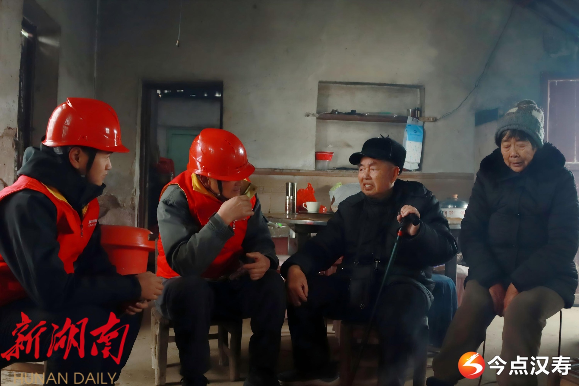 为了保证两位老人的安全,抢修人员还对室内个别老旧线路,进行包扎和紧固。送电后,彭爷爷的老伴非常高兴,一手抓住抢修人员,生怕他们跑了。“天寒地冻,劳烦你们顶风冒雪跑来一趟,真心不容易。屋里没别的,师傅!喝杯热茶,烤烤火,暖暖身子!”