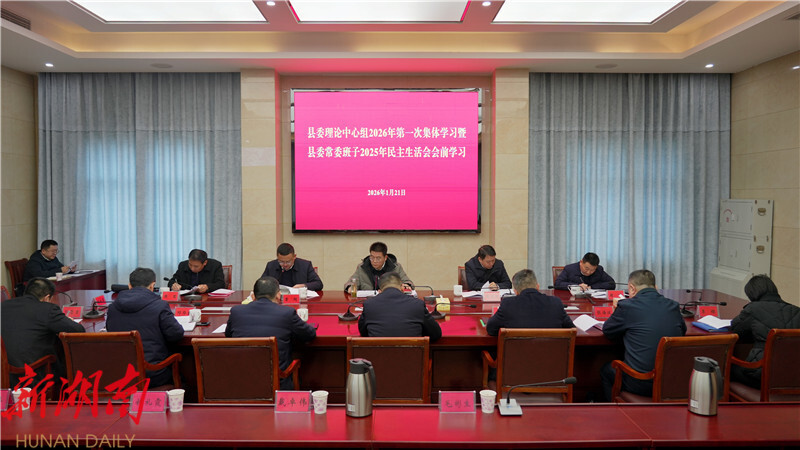 湖南日报·新湖南客户端1月22日讯(通讯员罗爽 周星亮) 1月21日,县委理论学习中心组举行2026年第一次集体学习暨县委常委班子2025年民主生活会会前学习,深入学习领会习近平总书记关于党的自我革命的重要思想和相关文件精神,深刻认识加强党的作风建设对保持党的先进性和纯洁性、巩固党的长期执政根基的重大意义,进一步增强转作风树新风的政治自觉、思想自觉和行动自觉。县委书记肖湘晖主持并讲话,县委副书记、县长吴光文及其他县委理论学习中心组成员参加。