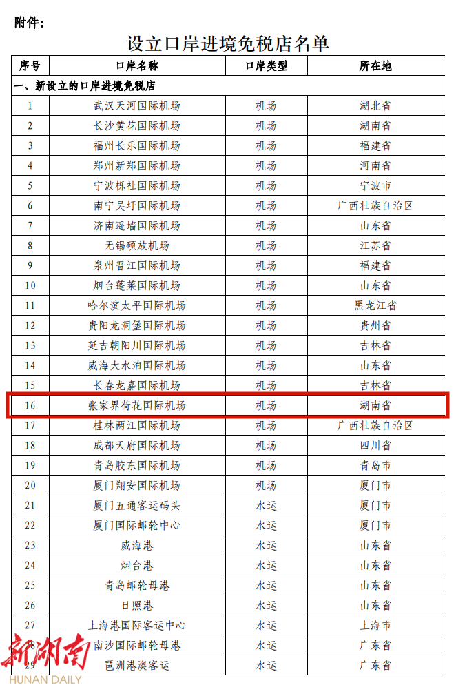 一、在张家界荷花 国际机场 等41个口岸各新设1家口岸进境免税店(在本通知所附《设立口岸进境免税店名单》中为序号1—41)。其中,横琴口岸 进境免税店设立后,允许自澳门进境居民旅客在该口岸进境免税店购买一定数量(15000元以内)的免税商品。