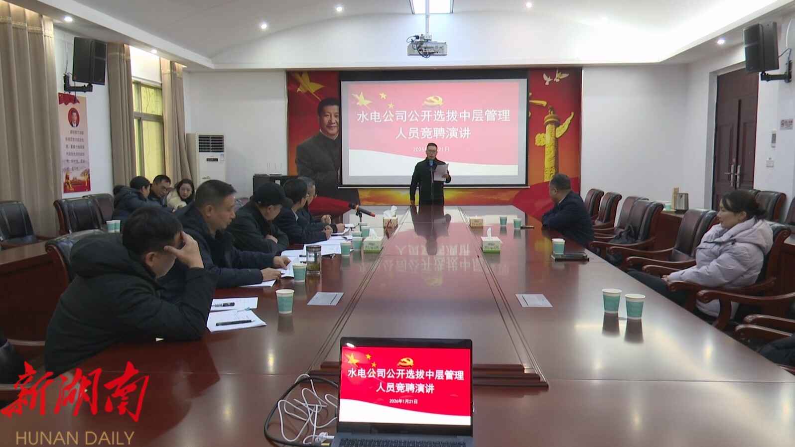 湖南日报·新湖南客户端1月22日讯(通讯员 郭志义 郑贵鹏 )1月21日,永兴县水电公司中层管理人员竞聘演讲活动顺利开展。本次竞聘通过抽签定序、现场演讲、评委提问三个环节,确保了“公开、平等、竞争、择优”的原则。