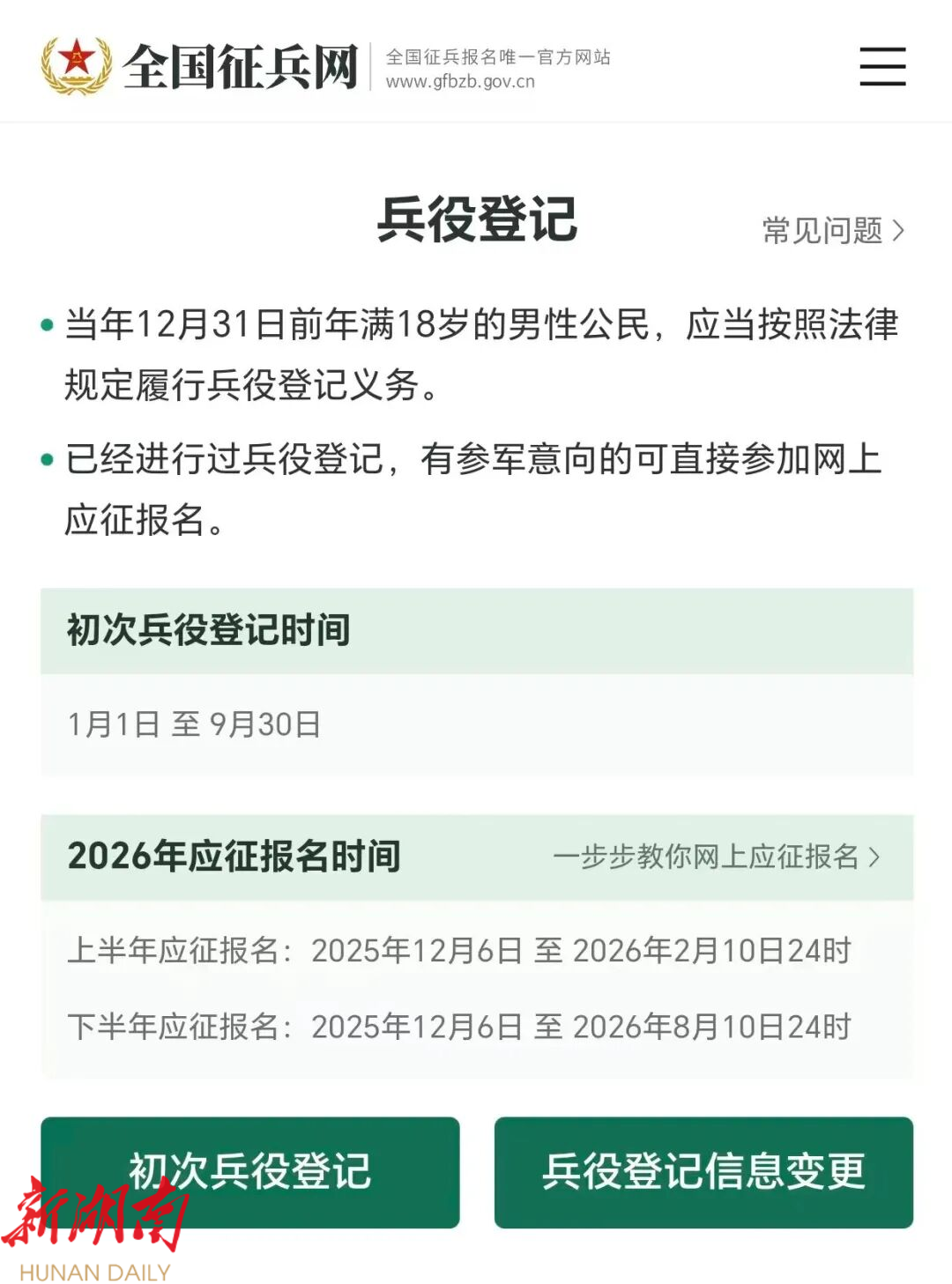 点击“初次兵役登记”: