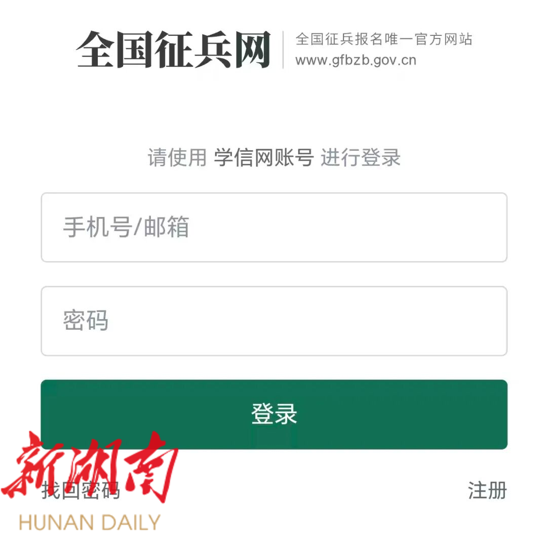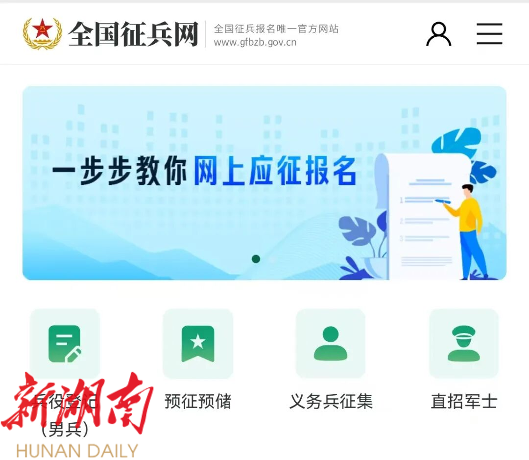 使用手机或电脑登录全国征兵网(https://www.gfbzb.gov.cn),点击“兵役登记(男兵)”