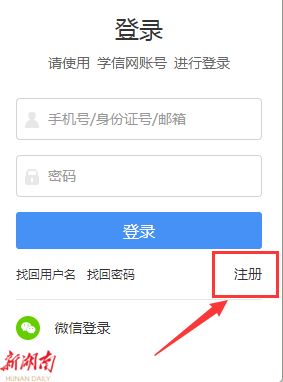 未注册过“学信网”的,点击“注册”: