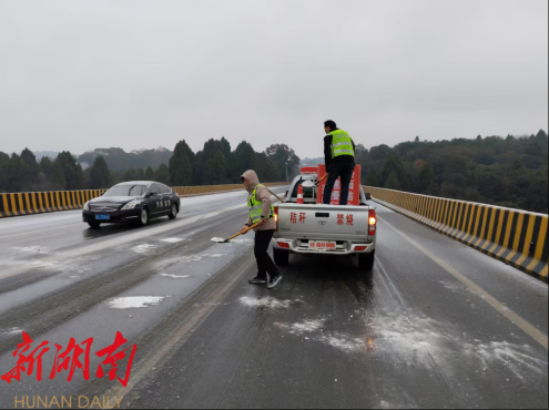 新桂阳1月22日讯(通讯员 马国娇)今天,受强冷空气影响,浩塘镇遭遇持续冰冻雨雪天气,辖区内部分道路结冰,给群众出行和生产生活带来严重安全隐患。为切实保障群众生命财产安全,镇党委、政府迅速启动应急响应,组织镇交通安全管理站工作人员开展全方位除冰清障和安全隐患排查工作。