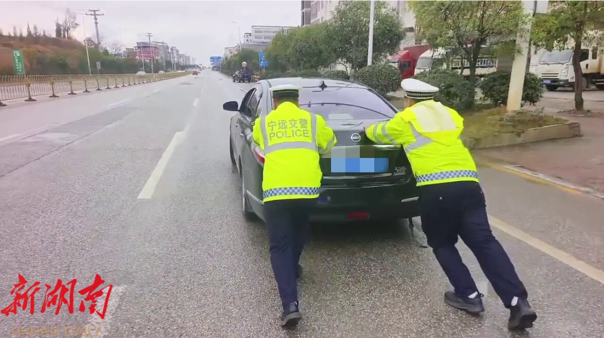 当日10时许,东溪街道舜阳大道路段,一辆黑色小车突发故障抛锚于行车道,影响交通秩序。巡逻交警发现后立即处置,得知驾驶员重启车辆无果、手足无措,便示意其掌控方向盘,与队员合力将车推至路边安全区域,还协助联系维修店并叮嘱安全事项,获驾驶员衷心致谢。