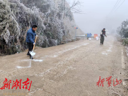 行动中,大家分工明确,协同作战。一组人员从乡政府出发在一端设立禁止通行的站牌,另一组从蓝山县县城出发利用铁锹、扫帚等工具,仔细清理路面积雪和薄冰,并在重点坡道、弯道、桥梁等易结冰危险路段,均匀抛洒融雪盐,加速冰雪融化,防止二次结冰。融冰后又小心翼翼地对道路两旁被冰雪压弯、压垂影响通行的树枝进行修剪、清理,及时排除高空坠枝风险,拓宽安全通行空间。尽管天气寒冷,作业环境艰苦,但全体人员干劲十足,忙碌的身影在冰雪的映衬下构成了一道温暖的风景线。