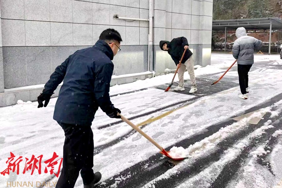 视外桃源客户端1月20日讯(通讯员:曹诚敏)受寒潮影响, 1 月 20 日凌晨,泥窝潭乡迎来降雪天气,至 20 日早晨,大地已披上银装,虽添美景却也给群众办事出行和车辆通行带来了诸多安全隐患。面对积雪阻碍,泥窝潭乡干部们自发行动、闻声而动,用实干与暖意驱散冬日严寒,筑牢群众出行安全防线。