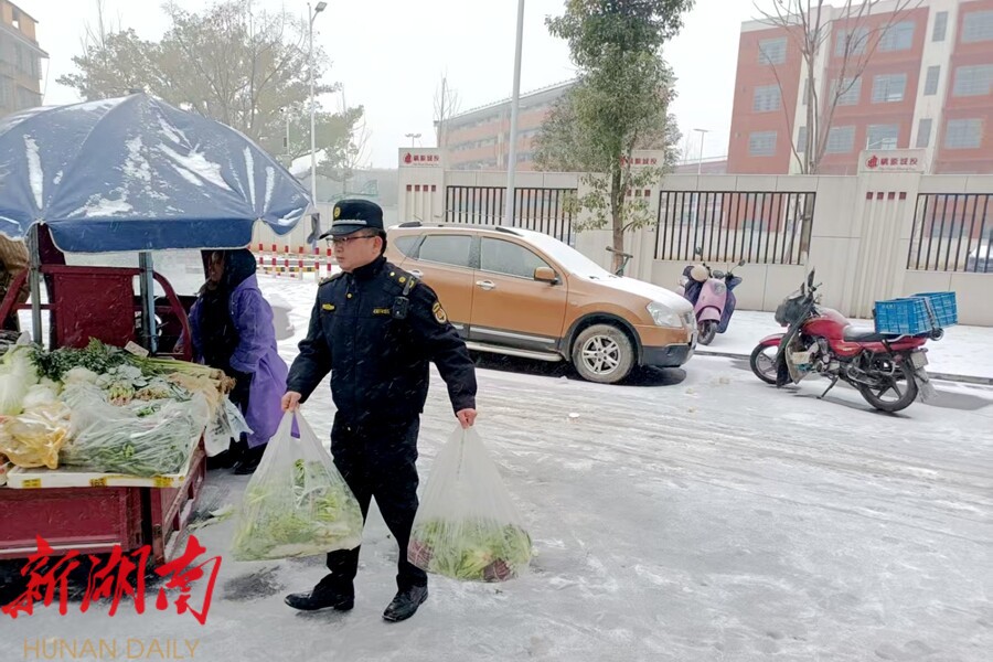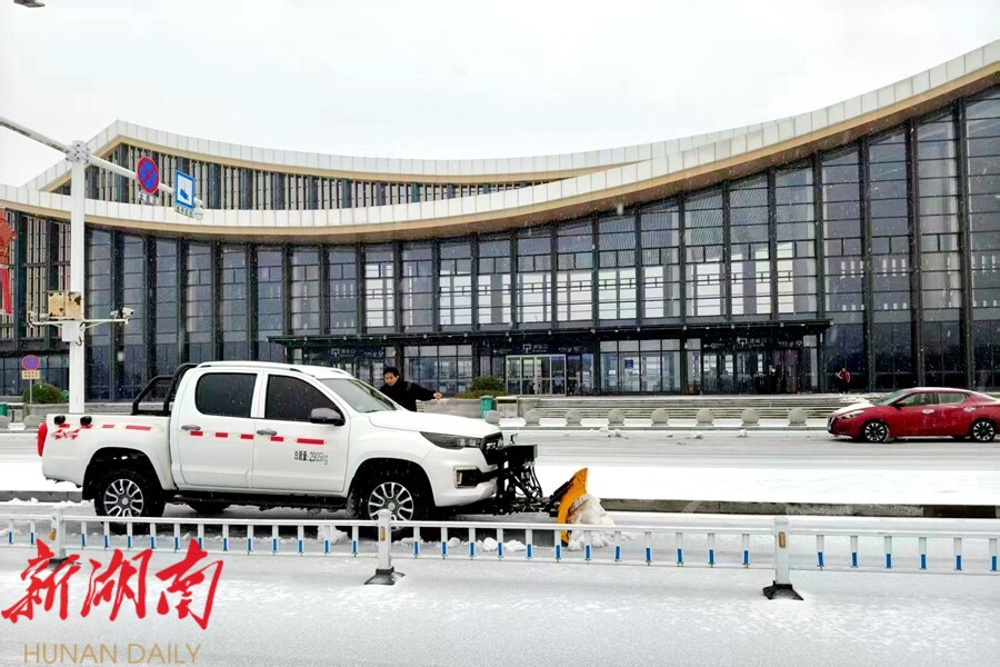 闻雪而动,织密城市安全“防护网”。1月19日晚,桃源县启动低温雨雪冰冻灾害IV级应急响应,局党组书记第一时间调度部署,并带队开展夜间隐患巡查。1月20日清晨7时,风雪笼罩桃城,城管系统全体干部职工迅速到岗到位,按照既定方案分兵把守、协同作战。8时许,绿化服务中心组织人员对城区主次干道绿化树木开展拉网式排查,及时清理松动倒伏植株、断枝残叶,消除坠物隐患;路灯管理站工作人员对全城路灯设施进行巡查维护,对倾斜灯杆进行校正加固,保障照明设施安全运行。9时起,除雪车在文昌路抗洪纪念碑段、垃圾填埋场进场道路、火车站站前广场进站通道等重点路段同步作业,车前铲雪开路,车后撒布融雪剂,高效清除道路冰雪,保障交通畅通。与此同时,路面执勤人员主动伸出援手,帮助抛锚车辆转移至安全区域,引导卖菜摊贩至避风挡雪地带经营。据统计,此次除雪保畅行动,除重点地段秩序维护人员外,已出动抢险人员180余人次、作业车辆25台次,撒布融雪剂6吨。
