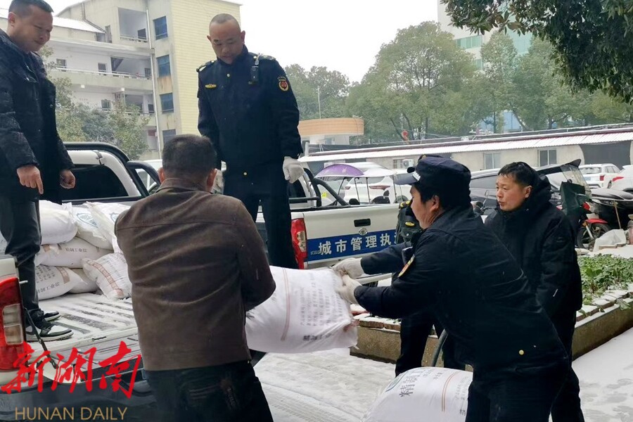 视外桃源客户端1月20日讯(通讯员:谭佩君 文勇君)1月19日至20日,寒潮携雨雪席卷桃源,气温骤降。桃源县城市管理和综合执法局以雪为令、闻雪而动,严格按照应急预案,有序开展安全隐患排查与除雪融冰工作,全力以赴守护桃城平安稳定。