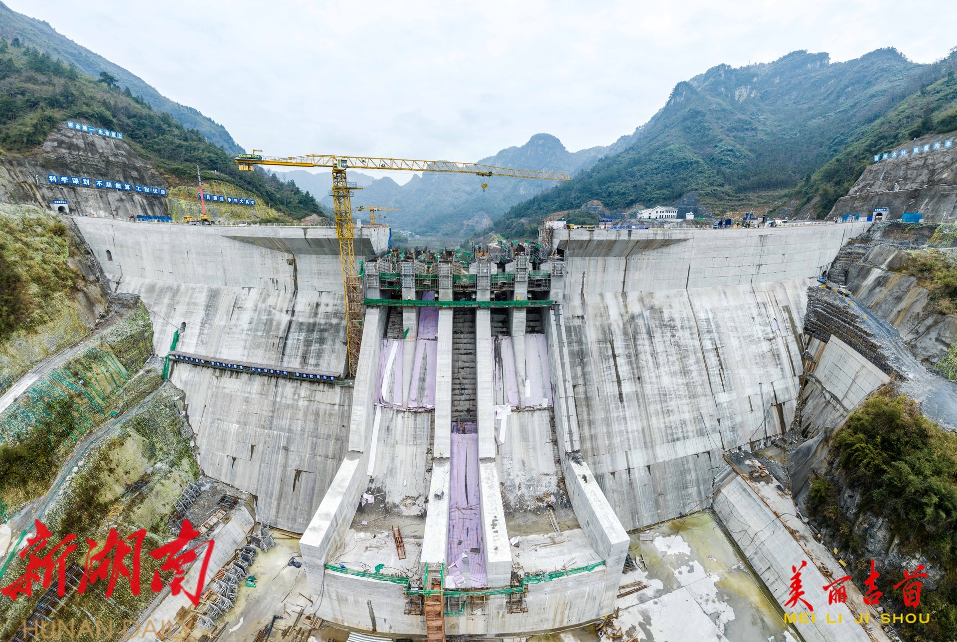 吉首市融媒体中心1月22日讯(全媒体记者 彭璟 姚元浩)2026年1月22日,吉首市矮寨镇大兴寨水库工程建设现场,工人在进行溢流坝段浇筑施工。为应对近期低温冰冻天气,该建设单位在施工区域设置了保温装置,并科学调整作业时间,全力保障重点水利工程按计划有序推进。预计溢流坝段浇筑任务将于今年3月底全部完成。