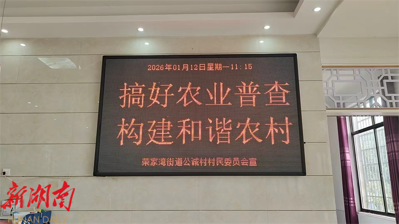 湖南日报·新湖南客户端1月22日讯(通讯员 彭会) “亲爱的父老乡亲们,2026年第四次全国农业普查已经启幕,这既是摸清十年来农业、农村、农民新变化的重大国情国力调查,更是关乎每一户切身利益的民生实事!”1月22日上午9时许,岳阳县荣家湾街道公诚村的“村村响”中又传来了“乡音版”的第四次全国农业普查综合试点工作告知书。