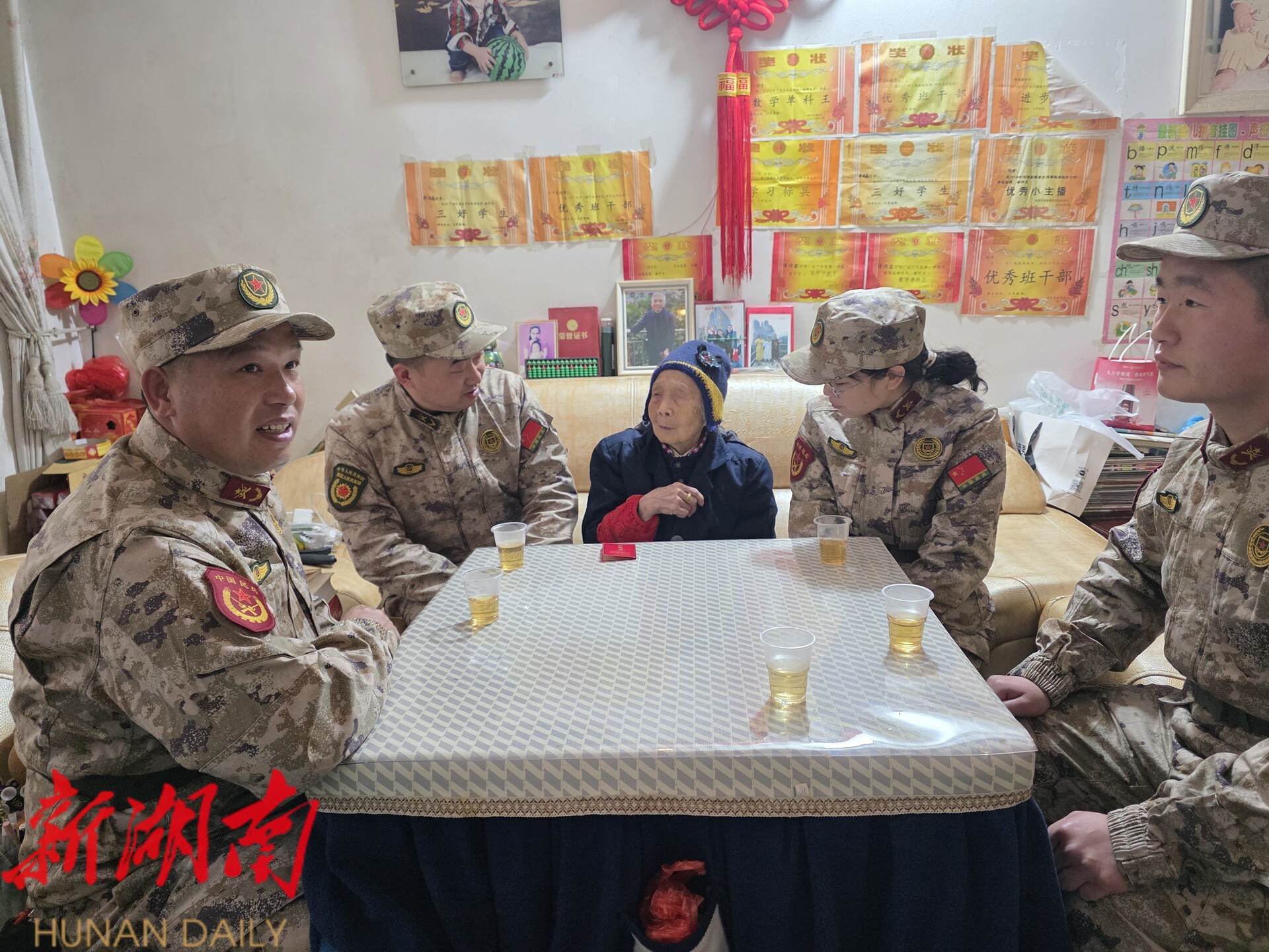 新桂阳1月23日讯(记者 李玮嘉 通讯员 夏峰)1月22日,县人武部联合浓香红服务驿站的志愿者对抗战老兵、抗美援朝老战士、湘南游击队员进行走访慰问,在寒冬岁末为他们送去党和政府的关怀与温暖。