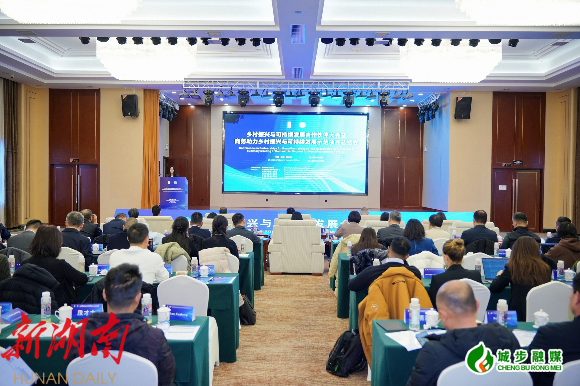 新城步客户端1月23日讯(记者 刘平甫)1月22日,乡村振兴与可持续发展合作伙伴大会暨商务助力乡村振兴与可持续发展示范项目总结会在湖南省城步苗族自治县举行。中国国际经济技术交流中心副主任艾音方,联合国开发计划署驻华代表处代理驻华代表乔展,联合国世界粮食计划署中国办公室副主任柯世明,商务部财务司乡村振兴工作处二级调研员徐浩伦,城步苗族自治县委副书记、县长王慧敏出席并致辞。