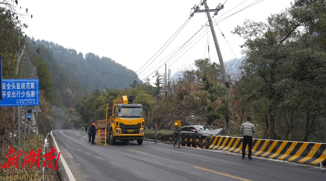湘西古丈:寒潮下山路险 车辆失控撞杆多方联动带电抢修保供电