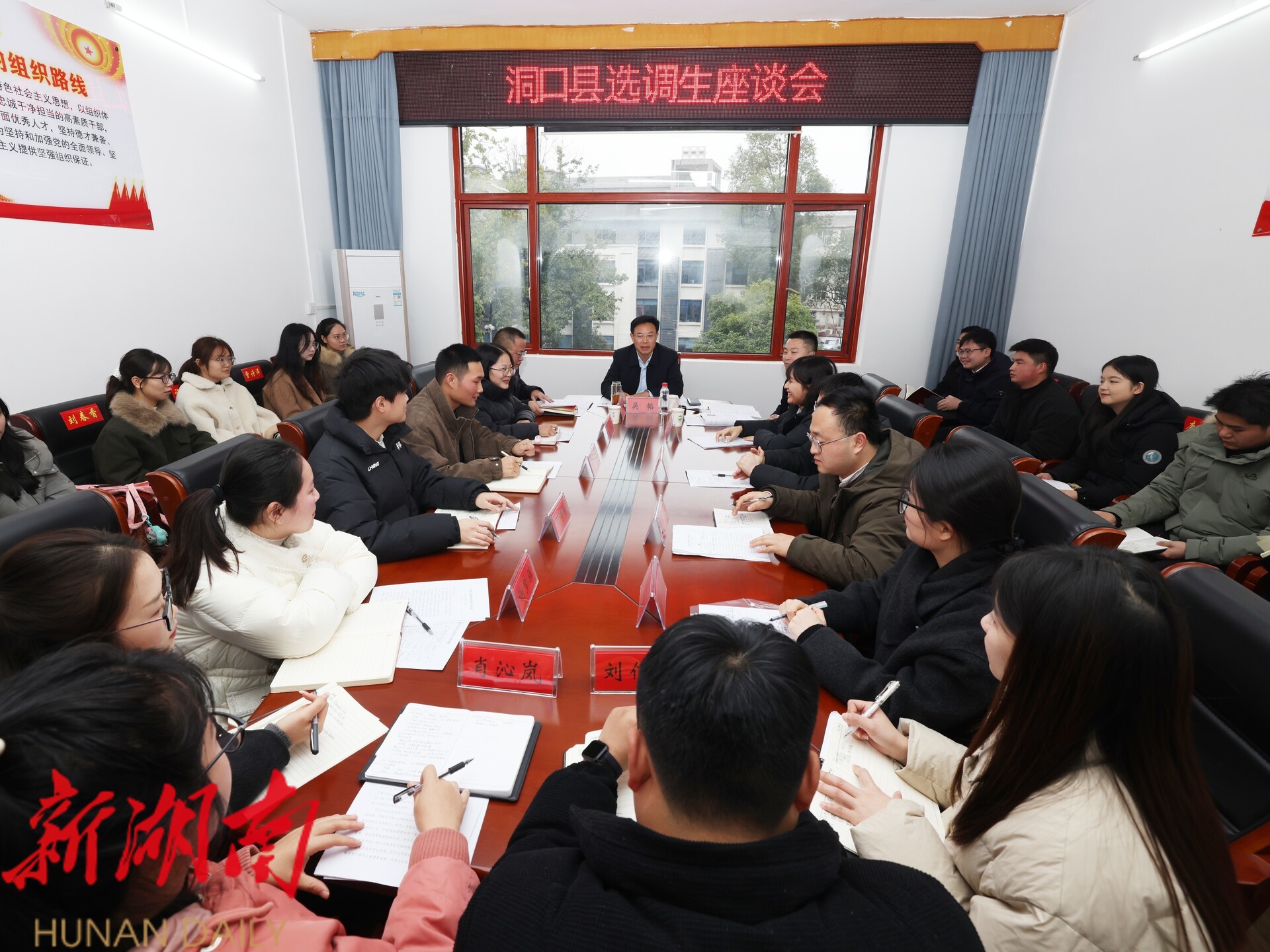 洞口融媒1月23日讯(记者:薛源) 1月23日下午,我县召开选调生座谈会,县委书记吴韬出席并讲话,县委常委、组织部部长唐建新主持,县委组织部相关同志、部分选调生代表参加。