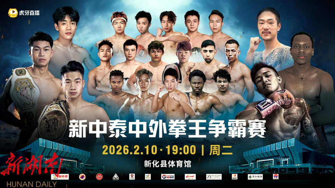 2026年2月10日,中外拳王,跨年之战,是续写荣耀的传奇。是专属格斗人的热血春晚,更是梅山功夫与世界搏击的激情碰撞。新化本土选手戴榆彬、伍家旺、吴俊业诠释梅山力量的新生代锋芒;国内名将王顺利、王熙,郑兆彬,廖世绪等悍将,将与日本、泰国、伊朗、摩洛哥、喀麦隆、塔吉克斯坦、卢旺达等多国知名拳手登台争霸,群雄汇聚,王者之争,舍我其谁!这是速度与力量的极致较量,是荣耀与梦想的巅峰对决。
