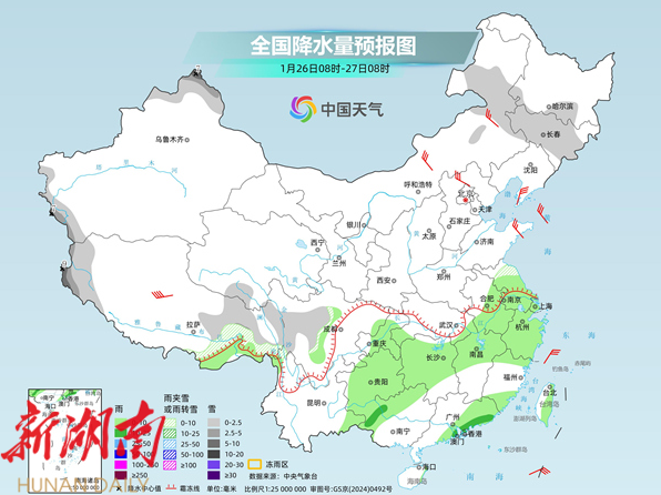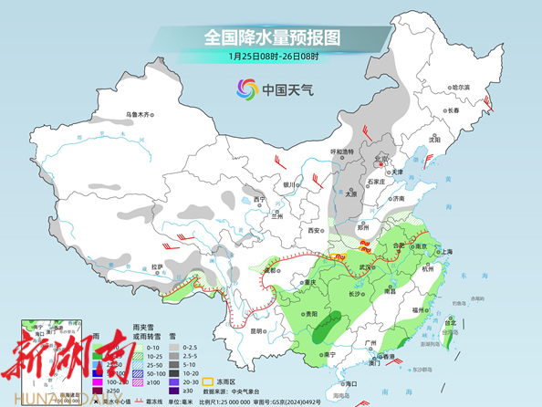 在这两股冷空气的影响下,今起至下周,我国雨雪天气发展增多, 其中25日至27日,华北、东北地区南部、黄淮北部等地将有小到中雪,河南南部、湖北北部等局地有冻雨。