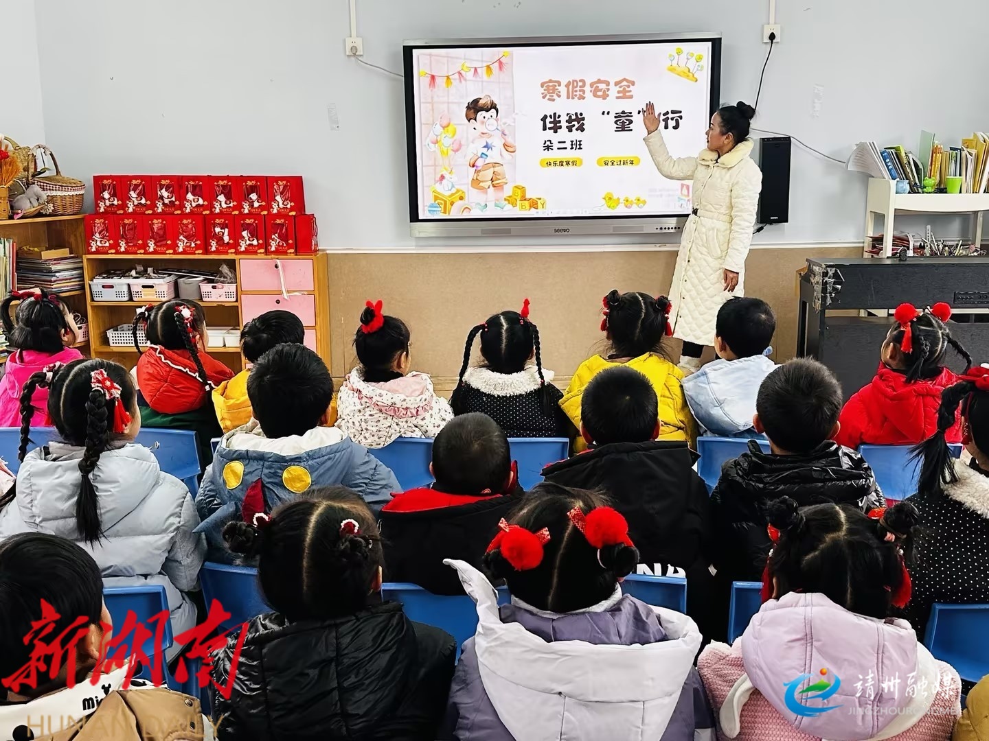 靖州融媒1月23日讯 (通讯员 孙秀兰 赵婉晴 赵婉婷)1月23日,靖州苗族侗族自治县幼儿园开展“寒假安全伴我童行”主题班会。