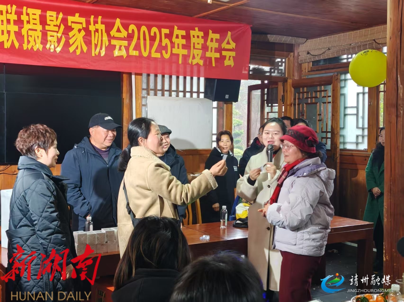 靖州融媒1月25日讯 (记者 张秦 实习记者 刘昊 通讯员 俞其荣)1月25日,靖州苗族侗族自治县文联摄影家协会2025年度年会在绿源生态农庄顺利举办,来自全县的90余名摄影爱好者及家属齐聚一堂,共同回顾过去一年的摄影历程,共绘2026年协会发展新蓝图。