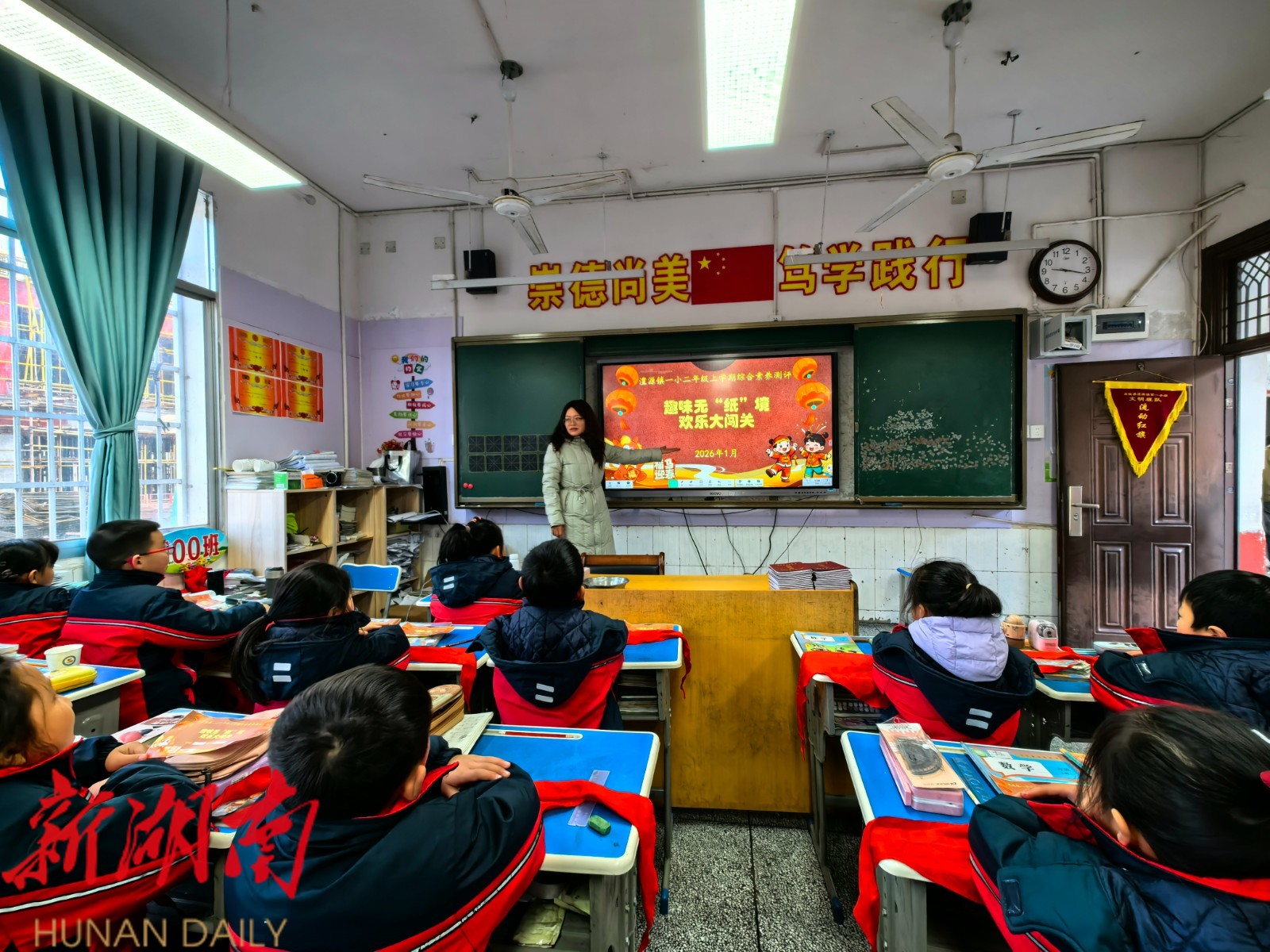 湖南日报·新湖南客户端1月24日讯(通讯员 覃珊珊)为全面落实“双减”政策,优化学生评价方式,1月23日, 澧源镇第一小学在二年级各班教室开展“趣味无‘纸’境,欢乐大闯关”综合素养测评活动,以趣味化、情境化、实践化的方式,对二年级学生的学科核心素养与综合能力进行全面考察。