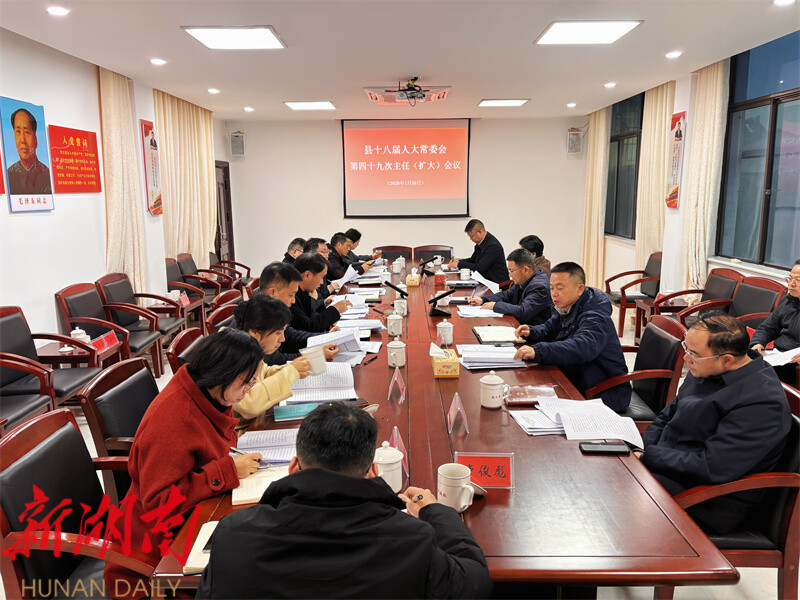 湖南日报·新湖南客户端1月26日讯(通讯员 周星亮) 1月26日,县人大常委会党组书记、主任周峰主持召开县十八届人大常委会第四十九次主任(扩大)会议。县人大常委会党组副书记、副主任王卫兵,副主任彭碧芳、任三星、周年参加会议。