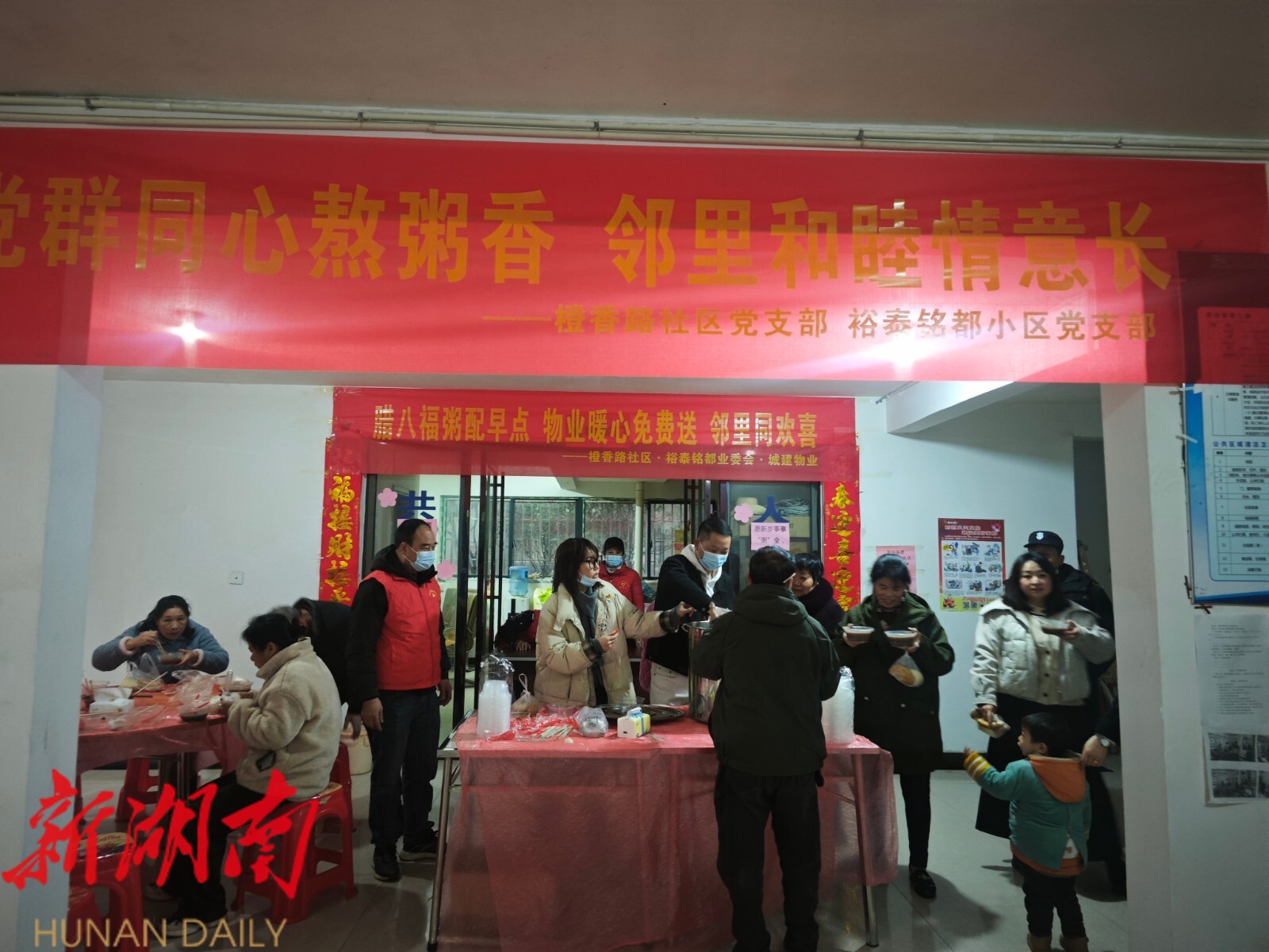 湖南日报·新湖南客户端1月27日讯(通讯员 黄娟 李毅 )腊八时节,暖意融融。为传承中华优秀传统文化,践行党建引领基层服务理念。橙香路社区誉诚桃源、裕泰铭都、顺安国际等各小区党支部同步开展“粥香沁暖冬日党群共话温情”主题活动,将一碗碗热气腾腾的腊八粥和丰富多样的早点送到居民手中,让传统节日的温馨与党组织的关怀浸润千家万户。