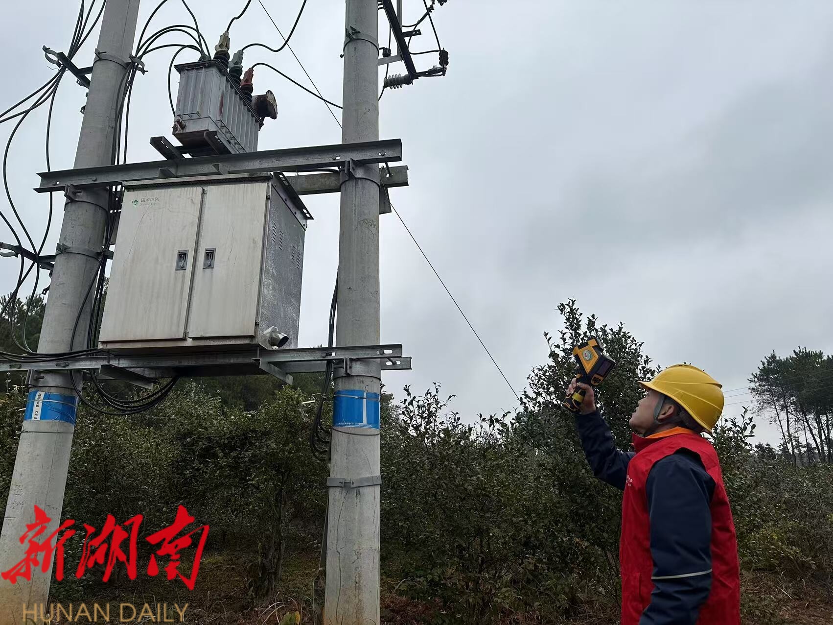 针对寒潮天气,该公司迅速启动应急预案,结合电网运行实际优化运行方式,组织各站所开展线路特巡。采用“人工地毯式排查+科技精准监测”立体巡检模式,重点排查杆塔基础、护坡等设施隐患,细致检查绝缘子、导地线粘雪覆冰情况,对变压器、隔离开关等设备精准测温,实现隐患早发现、早处理,确保缺陷动态清零。同时,国家电网湖南电力(松风)东方红共产党员服务队主动开展“送服务、送温暖”大走访,深入用户家中检查用电线路、排查安全隐患,现场讲解冬季安全用电、节约用电知识,引导群众科学用电、平安过冬,用温情服务拉近与用户距离。