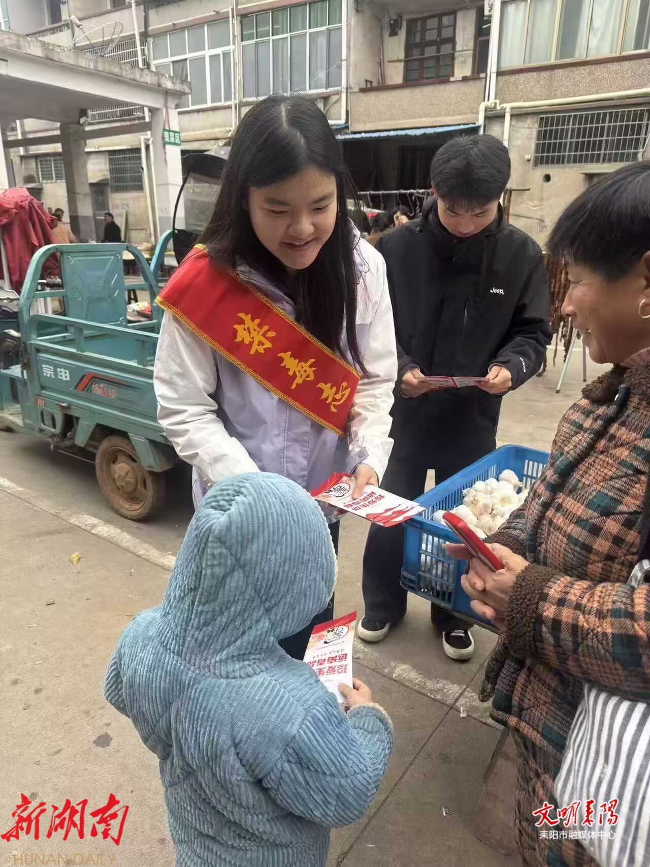 耒阳融媒1月27日讯(记者 徐霞 通讯员 宋姗姗) 1月26日,正值年末圩日,大市镇组织返乡大学生志愿者走进大市圩场,开展禁毒普法宣传活动,将禁毒知识送到群众身边,为冬日圩场增添了浓厚的法治氛围。
